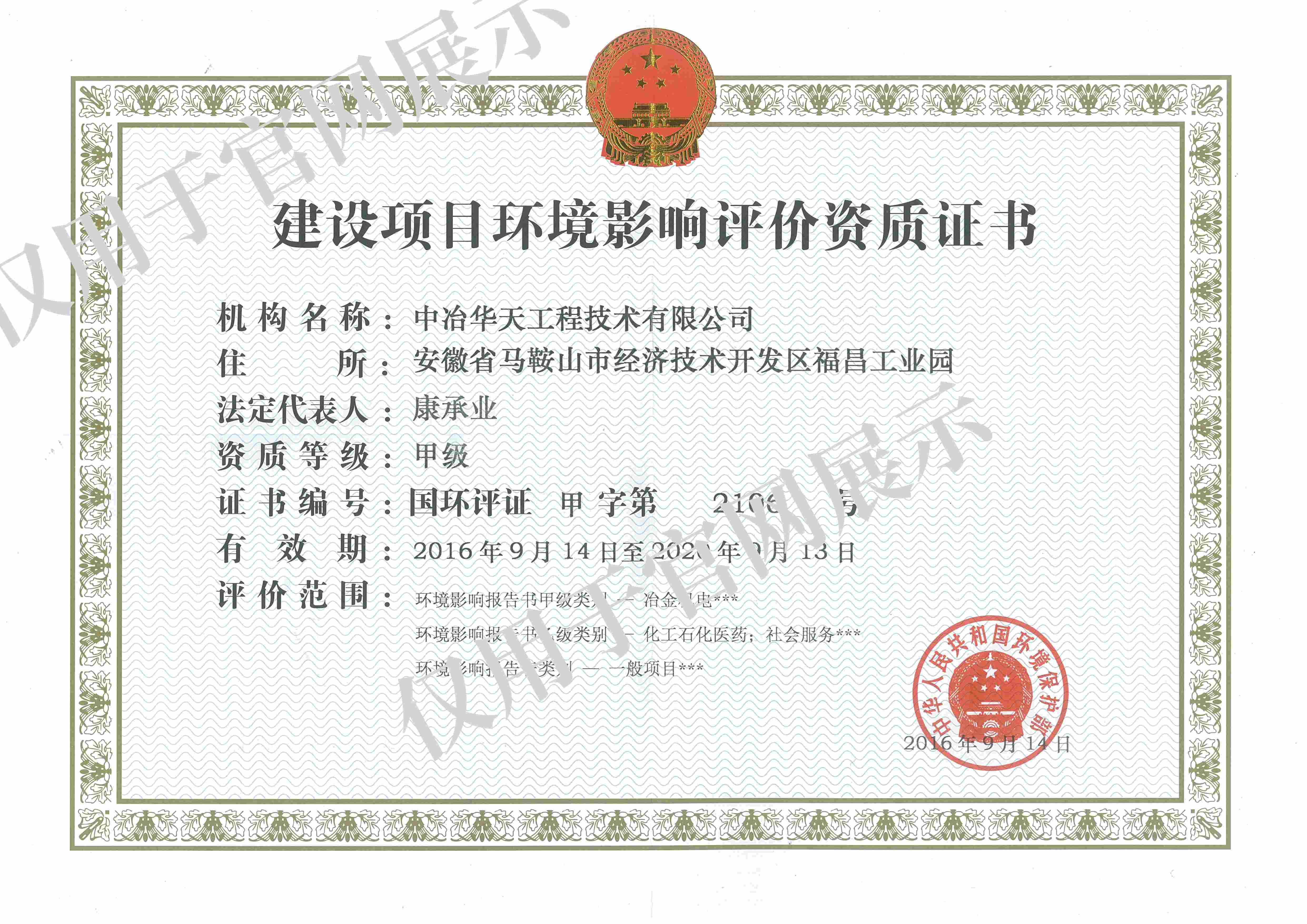 建設(shè)項(xiàng)目環(huán)境影響評(píng)價(jià)甲級(jí)資質(zhì)證書