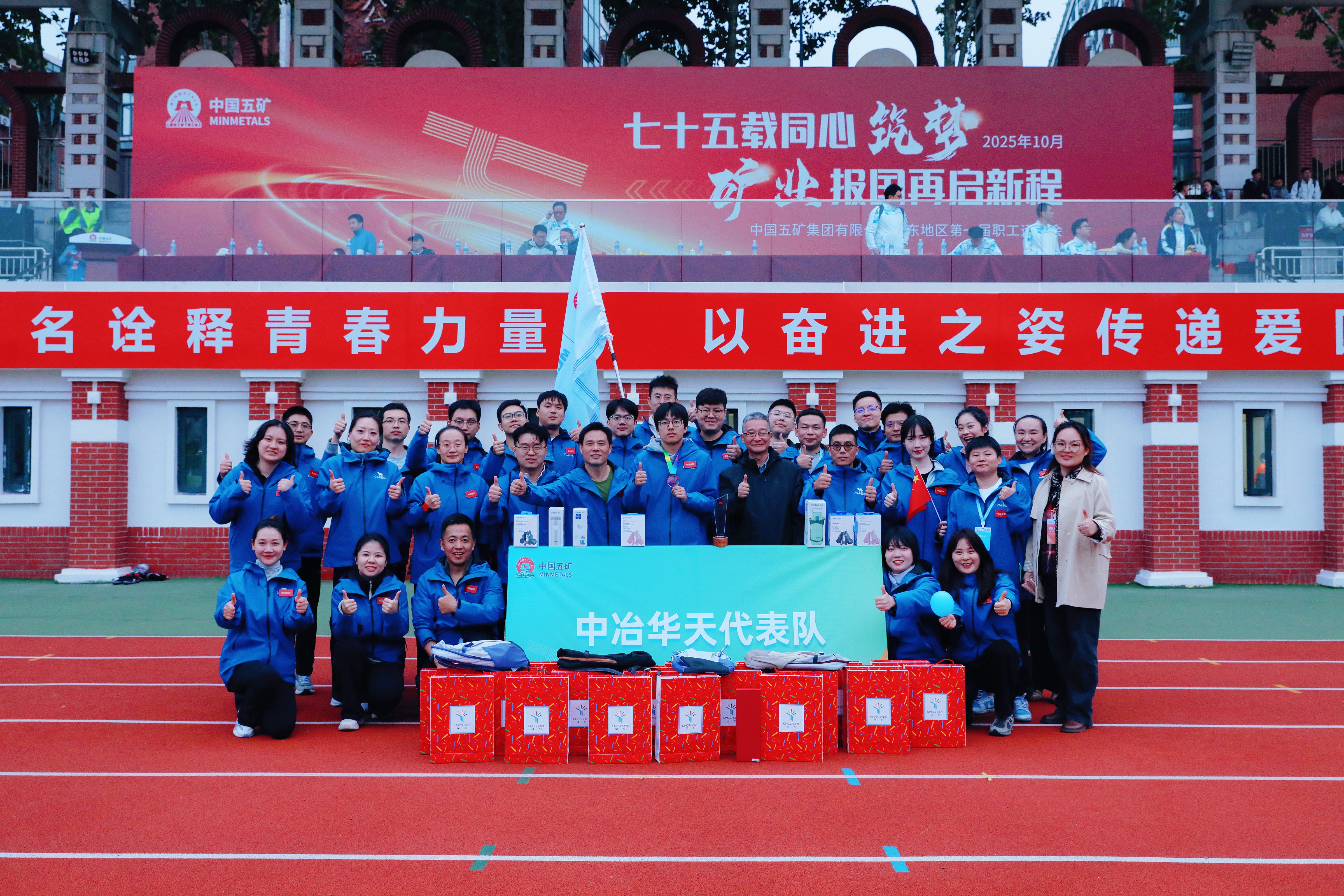 10月25日,中國(guó)五礦華東地區(qū)第一屆職工運(yùn)動(dòng)會(huì)在山東青島開(kāi)幕,中冶華天代表隊(duì)獲集體項(xiàng)目冠軍1項(xiàng)、個(gè)人項(xiàng)目季軍1項(xiàng),并在12個(gè)項(xiàng)目中躋身前八強(qiáng),以優(yōu)異的成績(jī)展現(xiàn)了華天人“向陽(yáng) 向上”的風(fēng)采。中國(guó)五礦黨組成員、副總經(jīng)理,中國(guó)中冶黨委書(shū)記、董事長(zhǎng)陳建光,中國(guó)五礦工會(huì)副主席朱江,以及華東區(qū)域各單位黨政負(fù)責(zé)人、工會(huì)主席、勞動(dòng)模范共同出席開(kāi)幕式。