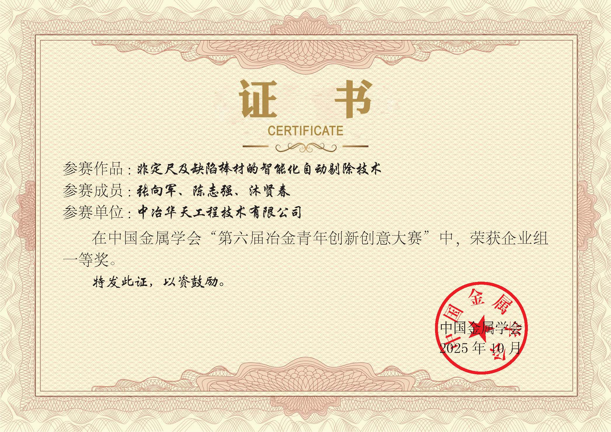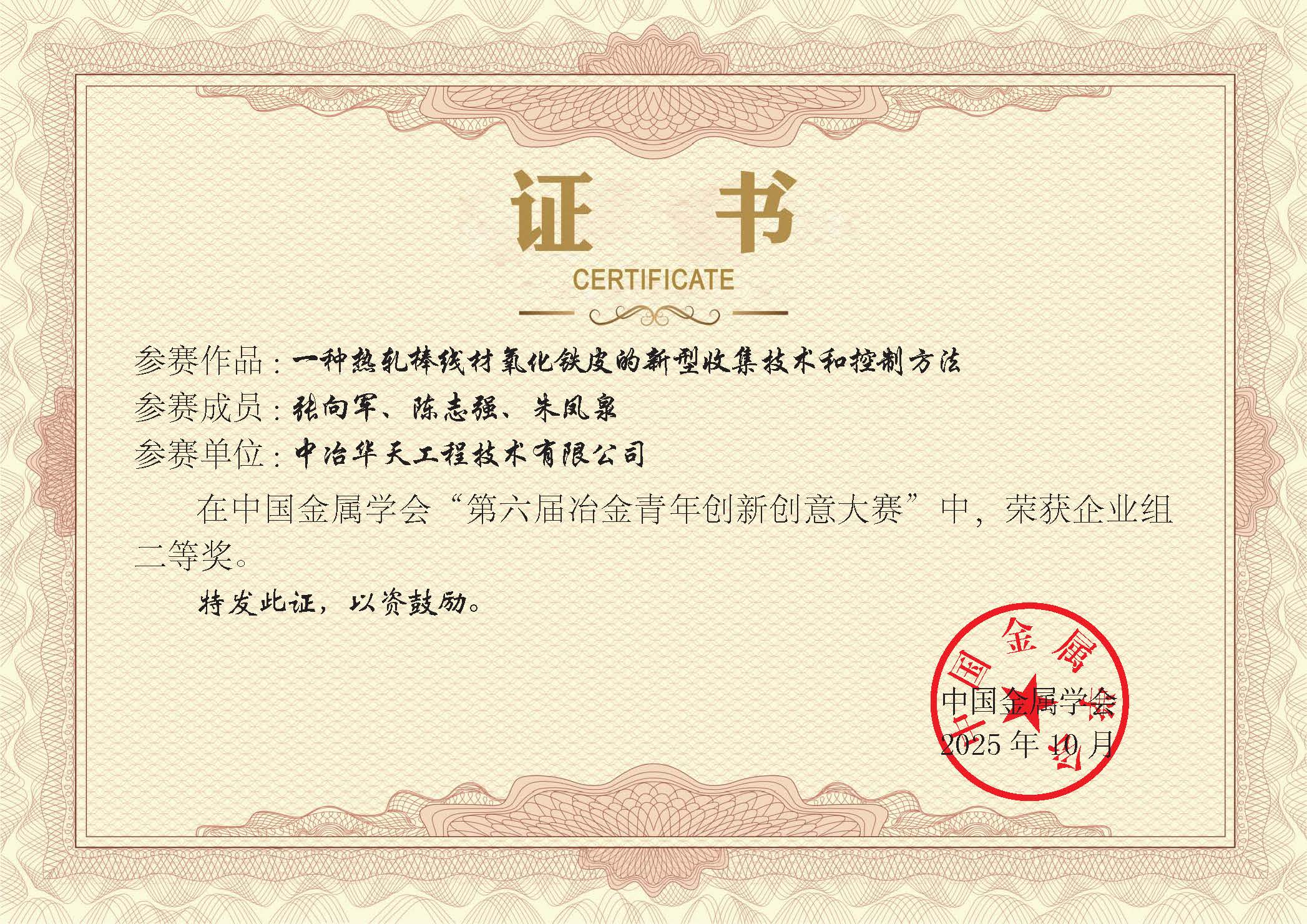 創(chuàng)新潮涌,捷報頻傳!10月27日,第六屆“冶金青年創(chuàng)新創(chuàng)意大賽”獲獎名單正式揭曉。中冶華天鋼鐵院選送的兩項核心技術(shù)成果,憑借其顯著的創(chuàng)新性和應(yīng)用前景,從328個參賽項目中脫穎而出,分獲企業(yè)組一等獎與二等獎,彰顯了中冶華天研發(fā)團隊深厚的技術(shù)積淀與強大的創(chuàng)新活力,更展現(xiàn)了公司以科技創(chuàng)新驅(qū)動鋼鐵工業(yè)綠色化、智能化轉(zhuǎn)型的堅定決心與強大實力。